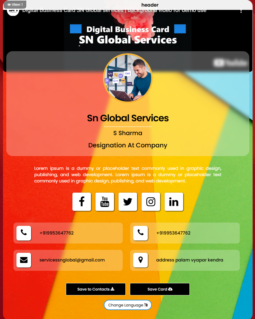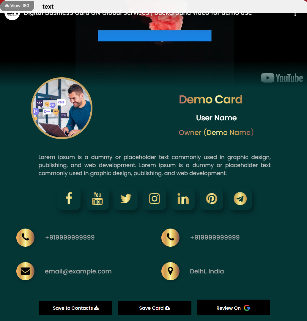 If you meet your prospective customers in person (one to one meeting) or atleast you do telephonic conversations to market and sell your products or services, then our Digital Business Card will help convey your message in a more strategic way.